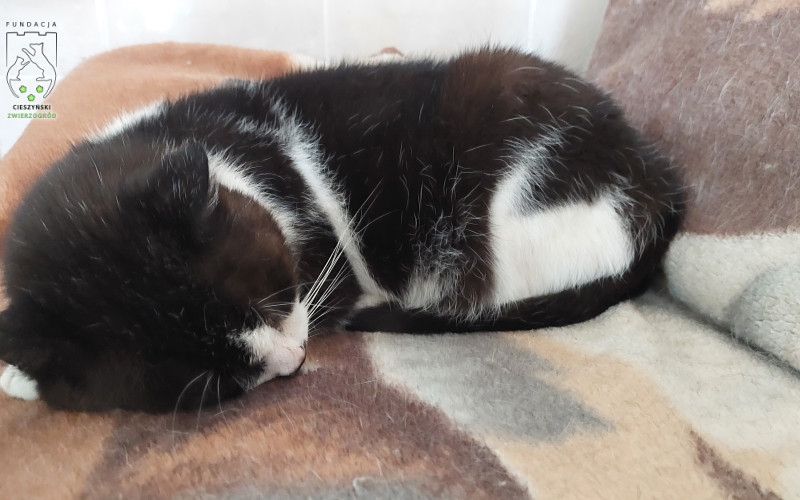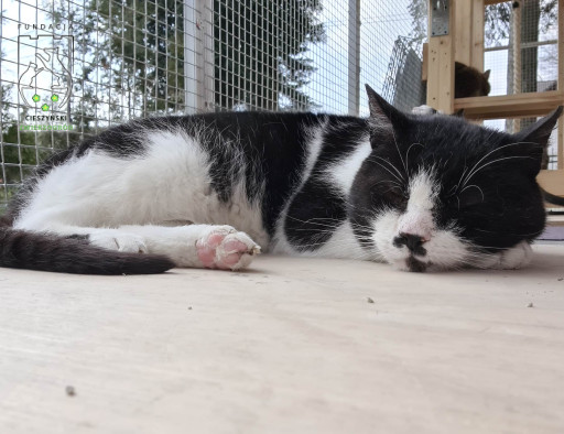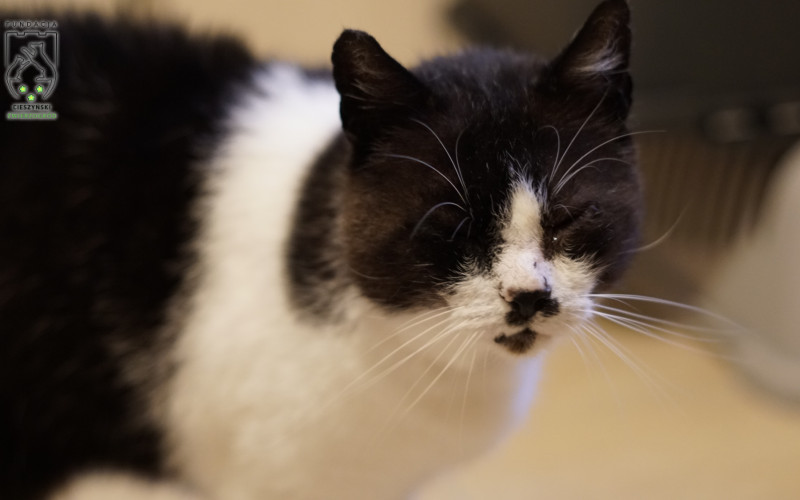 Czasami myślę, że nikt mnie nie zauważa, bo jak byłem młodszy i trafiłem do Kociogrodu, to byłem bardzo, ale to bardzo chory – nawet widziałem już Tęczowy Most, ale nie miałem siły przez niego przejść no i zostałem. Na początku karmili mnie przez rurkę prosto do żołądka, byłem przeraźliwie chudy, a moje futerko po chorobie jest takie trochę pomierzwione. Choć ostatnio przybrałem (taki jeden Wolo, co to sam chudy nie jest mówi mi, że jestem gruby jak mnie na ręce bierze, ale tak naprawdę to on jest słaby!) i nawet wylizałem futerko na ładniejsze. Tak bardzo chciałbym być zauważony, jestem taki grzeczny i spokojny, dobrze dogaduję się z innymi Kotami, a ludzi uwielbiam.