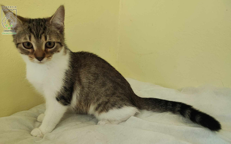 Wiek: 1 rok 9 miesięcyUmaszczenie: Szara pręgowana z białymSierść: KrótkaRasa: Europejski