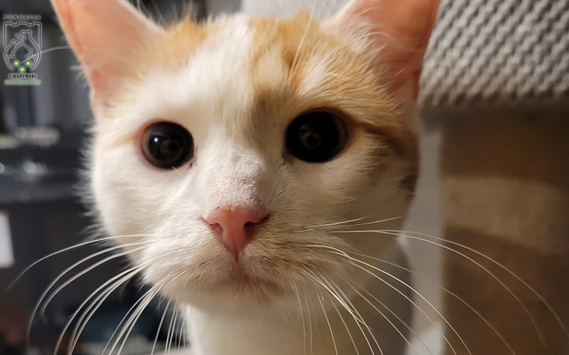 Do Kociogrodu przyjechałem sam bez rodzeństwa i bez mamy jako 4 miesięczny kociak, na początku bardzo płakałem nie chciałem być sam, domagałem się uwagi wolontariuszy a mój płacz rozrywał im serca ?. Ale gdy tylko poświęcali mi troszkę czasu pogłaskali, utulili od razu włączałem motorek i byłem szczęśliwy. Teraz na szczęście już biegam z innymi kocimi dzieciakami po Kociogrodzie, razem się bawimy, razem psocimy, razem jemy i nawet śpimy razem ?. Ciocie mówią, że jak na kociaka to jestem wyjątkowo spokojny i grzeczny, lubię się pobawić, być głaskany i tulony ale nie jestem nachalny i za dużo nie psocę no a że jestem taki słodki i śliczny to ponoć jestem kociakiem idealnym… No niby fajnie tylko dlaczego taki idealny kociak jak ja wciąż nie ma domku?
