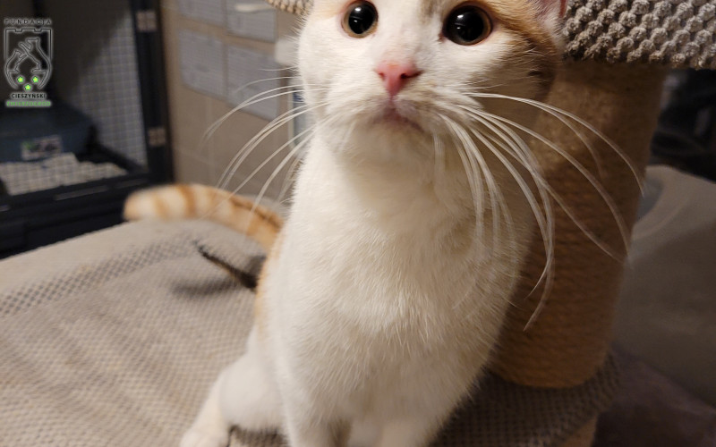 Do Kociogrodu przyjechałem sam bez rodzeństwa i bez mamy jako 4 miesięczny kociak, na początku bardzo płakałem nie chciałem być sam, domagałem się uwagi wolontariuszy a mój płacz rozrywał im serca ?. Ale gdy tylko poświęcali mi troszkę czasu pogłaskali, utulili od razu włączałem motorek i byłem szczęśliwy. Teraz na szczęście już biegam z innymi kocimi dzieciakami po Kociogrodzie, razem się bawimy, razem psocimy, razem jemy i nawet śpimy razem ?. Ciocie mówią, że jak na kociaka to jestem wyjątkowo spokojny i grzeczny, lubię się pobawić, być głaskany i tulony ale nie jestem nachalny i za dużo nie psocę no a że jestem taki słodki i śliczny to ponoć jestem kociakiem idealnym… No niby fajnie tylko dlaczego taki idealny kociak jak ja wciąż nie ma domku?